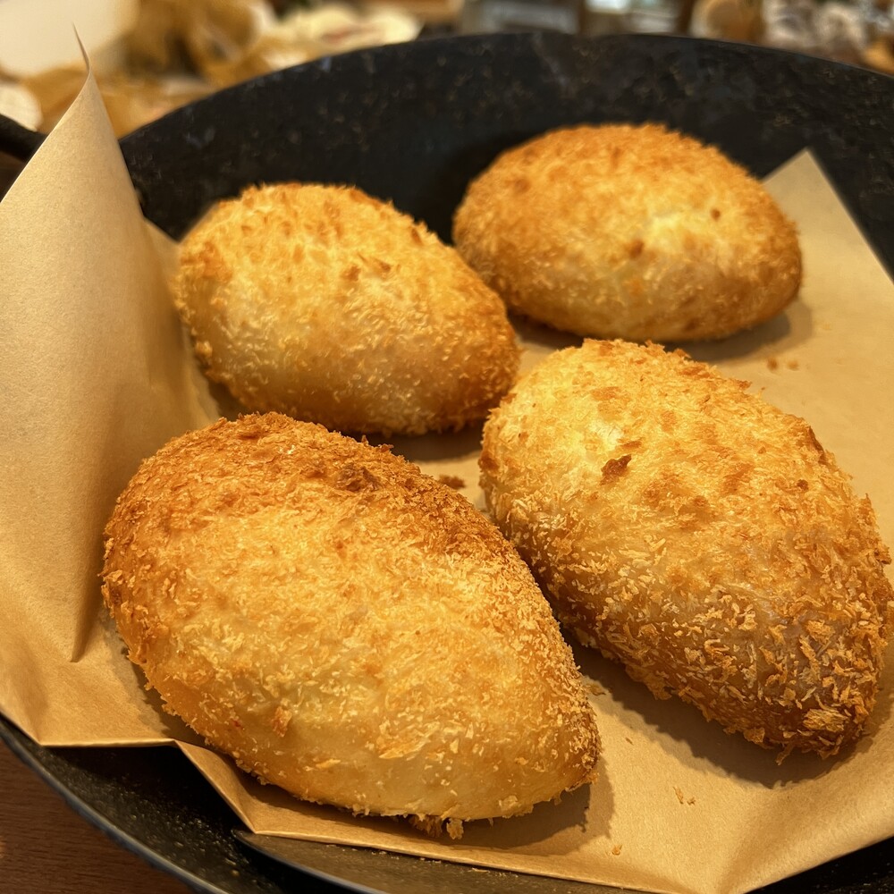 「オリーブオイルの焼きカレーパン」は、オリーブオイルを使ってあっさりと焼き上げたヘルシーなカレーパン。中のカレーはペースト状のフィリングで甘口に仕上げられており、食べやすさにもこだわっています🍛